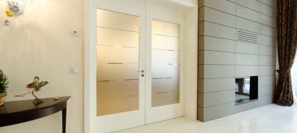 Bei diesem repräsentativen Haus im Berliner Stadtteil Zehlendorf wurde die streng horizontale Linienführung der keramischen Wandverkleidung auf die Unterteilung der Kassenttentüren übertragen.